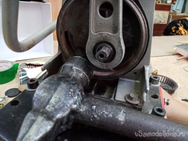 Сейчас нужно снять шатун с подшипника. Съемника конечно нет. Все по нашему, слегка постукивая кувалдой.