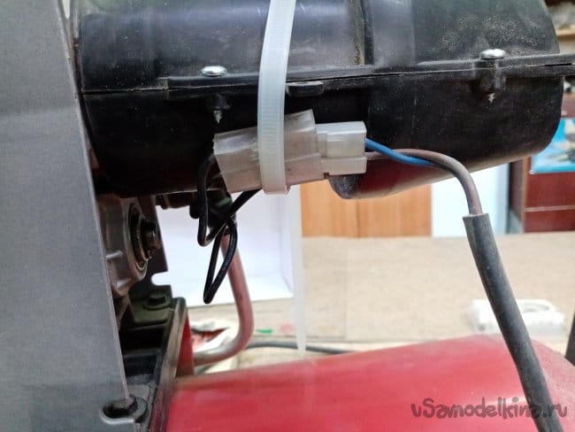 Одеваю чехол на мотор. Закрепляю провода на стяжки.