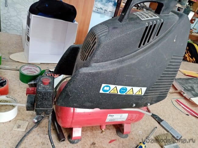 Во время очередной сессии по покраске авиамодели возникла ужасная ситуация. Задымил компрессор. Из под чехла повалил дым и запахло гарью, метнулся и в секунду выключил агрегат. Подумал накрылся мотор.