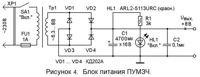 Схема блока питания усилителя ПУМЗЧ приведена на рисунке 4.