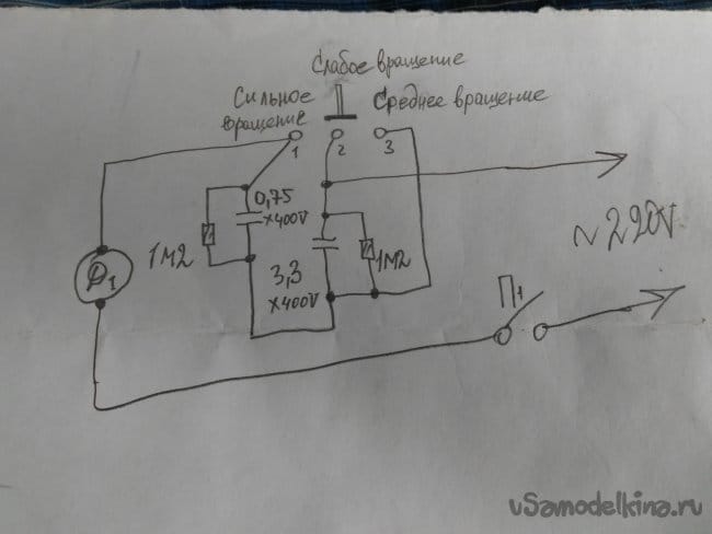А консилиум решил: разработать и смонтировать схему так, чтобы было три скорости вращения вентилятора, вместо одной. Дело серьёзное, больной вскрыт, времени осталось всего чуть, чуть, до обеда. Пришлось быстренько сделать снимок и приступить к модернизации.