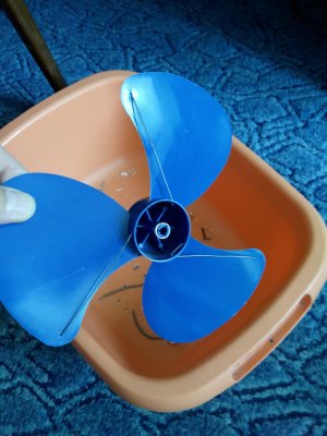Полностью всё проверили и зашили, о нет, закрутили заднюю крышку. Теперь вентилятор стал бодрячком и смотрится веселее. Имеет три скорости и не даст умереть от жары, своей хозяйке.