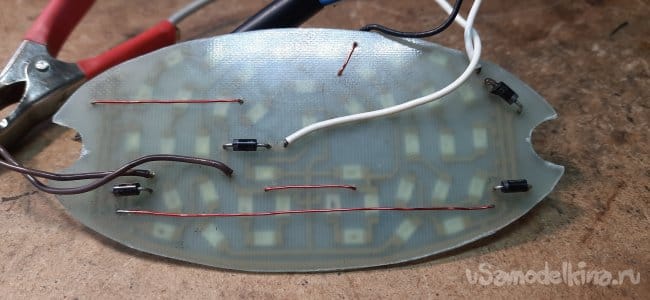 Но без хорошего радиатора они долго не выживут при таком токе. Я токоограничевающие резисторы подбирал по максимальному нагреву светодиодов не больше 45-50 градусов в закрытом фонаре.