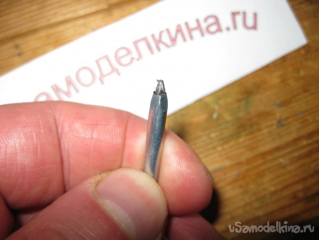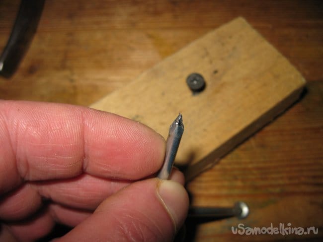Правда, кончик гвоздя при этом немного деформировался. Вот на нем видны царапины.