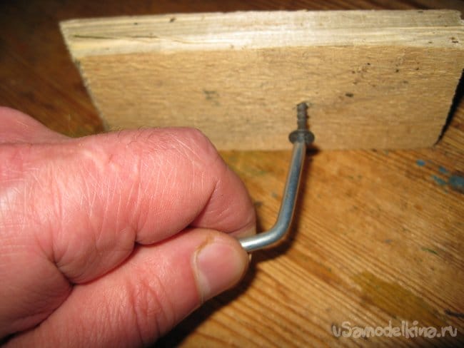 А затем снова завернул его в то же отверстие, а потом завернул в дощечку еще один такой же шуруп.