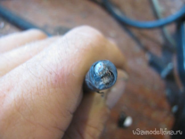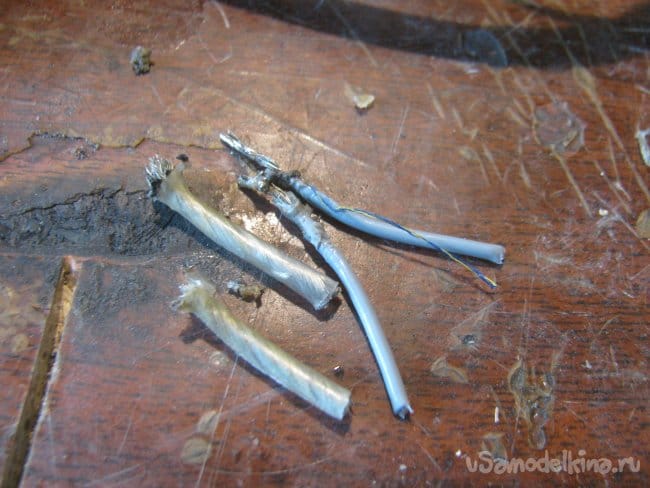 Ну а далее я аккуратно все распаял, вытащил кабель и обрезал. Проблема была в том, что жилы внутри кабеля гуляли, были плохо залиты.