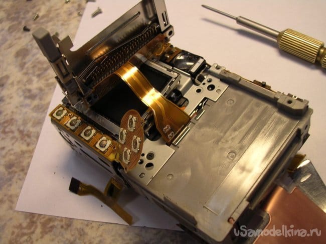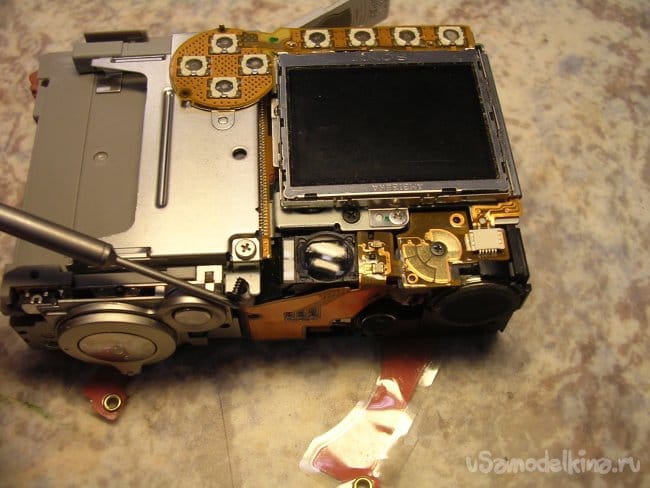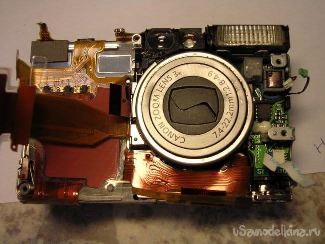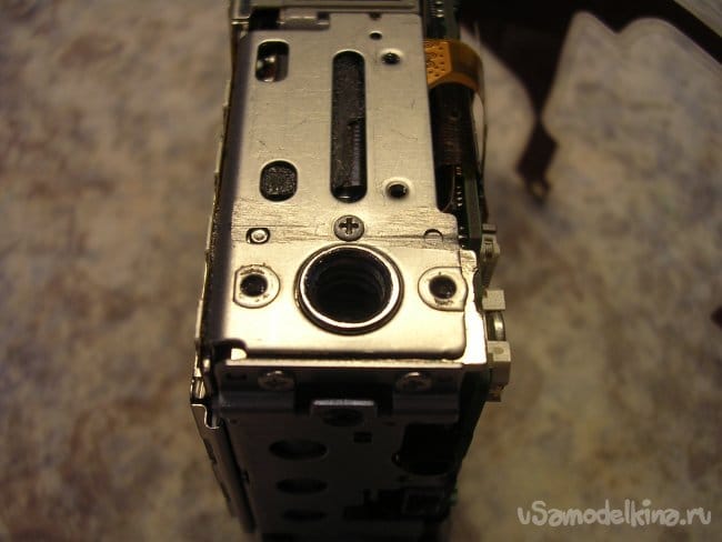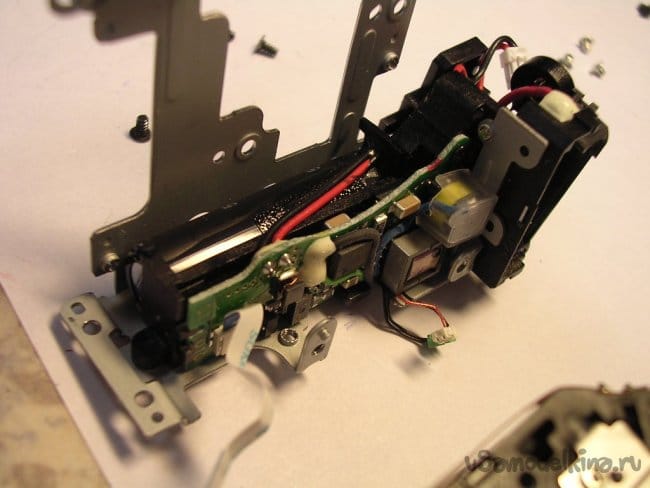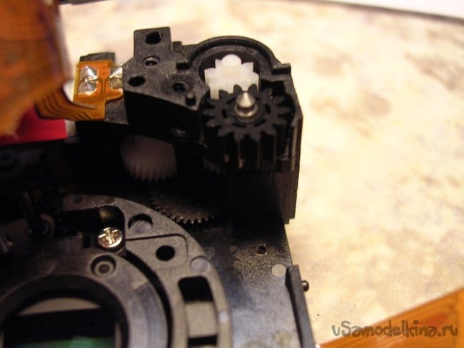 Подтягиваю аккумулятор до номинала, включаю и правда при выдвижении объектива на пол сантиметра раздается звук весьма низкого свойства. Немного вытаскиваю объектив руками и дальше он нормально движется и работает. Для гарантии прогоняю по тестам, все в норме кроме звука в начальной стадии выдвижения. Звук высокий, значит дефект шестеренок редуктора в близи мотора. Поскольку все вращается с большой скоростью. Если низкий значит ближе к объективу там вращение шестеренок значительно медленнее.