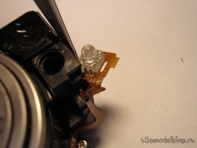 Вынимаю светодиод автофокуса из зажима.