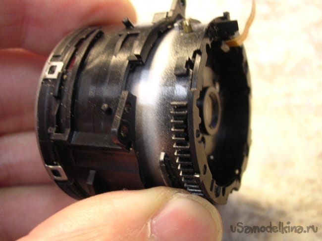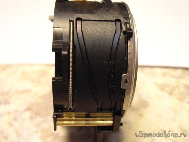 Сектор управления линзочками видоискателя. Когда объектив выезжает, пестики линзочек скользят по направляющим и увеличивают изображение пропорционально.