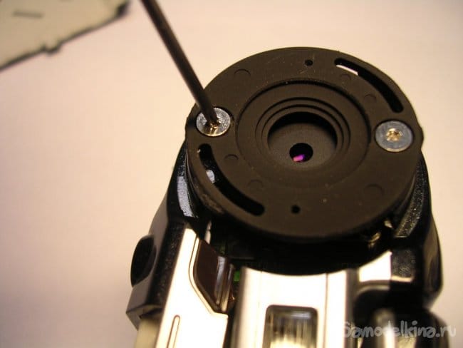 Осторожно размыкаю половинки. Нужно так-же демонтировать красивое блестяще колечко вокруг объектива. Одевается в натяг на защелках.