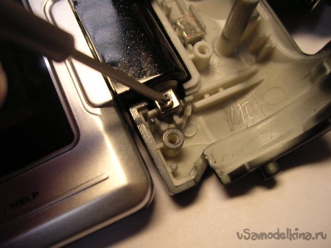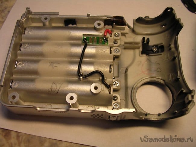 Начинаю разбирать. Под крышкой батарейного отсека четыре элемента. Многовато места занимают.