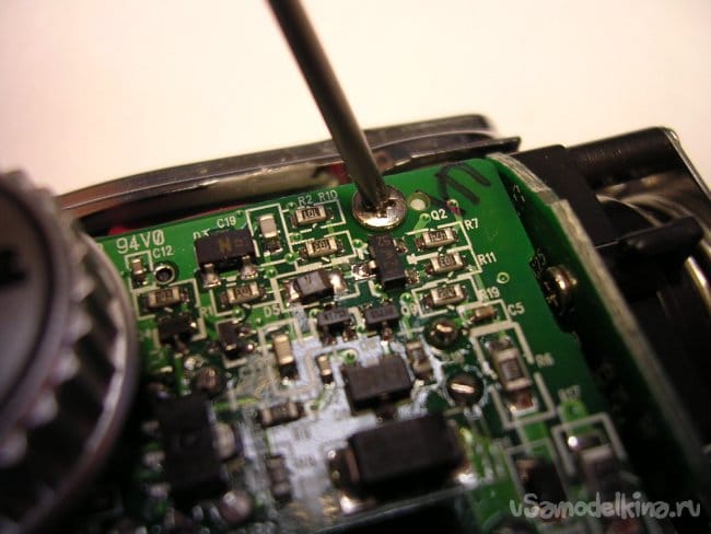 Под ней плата управления и плата вспышки. Разряжаю конденсатор.