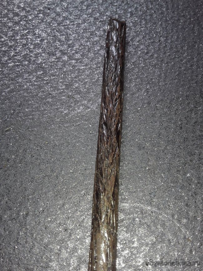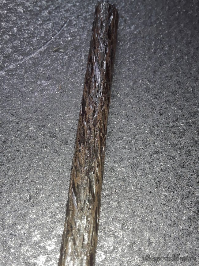 Ну вот и все готово приспособление закрепил саморезами к пню, и попробовал отформовать прут 8мм при формовке если нагревать заготовку то рисунок получается красивым, а самое главное, что работаешь быстрее думаю показывать как работать не надо все большие с молотком работать могут. Но иногда нет возможности нагревать заготовки можно и на холодную работать рисунок немного хуже, но, а так-то же самое, как и на горячую. При нанесении ударов заготовку нужно поворачивать и наносить удары в разные места иногда и повторно так рисунок каждый раз быть неповторим и красивым. Вот фото как получается на холодную думаю вполне сгодится на кору вроде похоже, а главное неповторимо красиво и своими руками за 30 минут свободного времени.