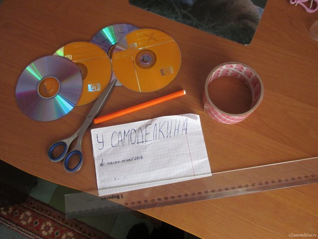 Можно обойтись и без ниток и шила… Если есть скотч – можете попробовать закрепить диски скотчем…