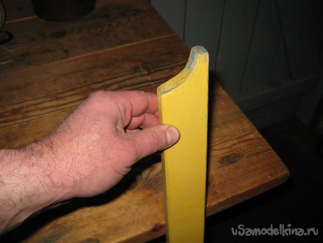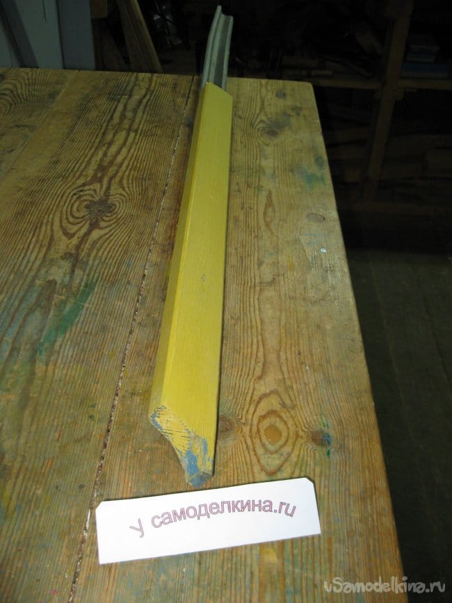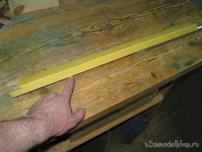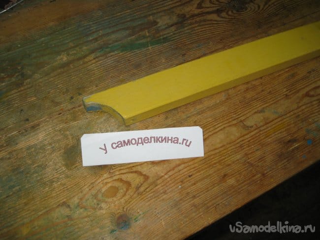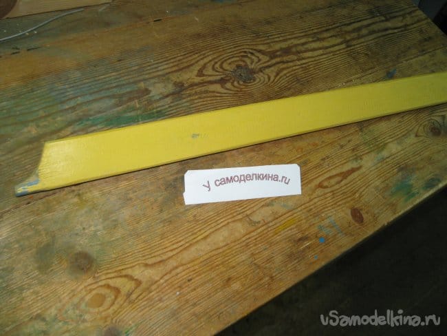 Шаг 1. Берем гладкую дощечку толщиной примерно 2 см, шириной, 5 см, и длиной 60-70 см. Если дощечка не гладкая, ее желательно предварительно остругать.