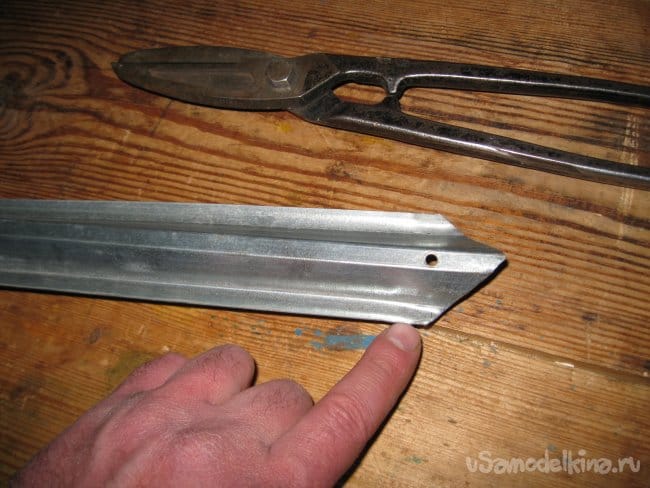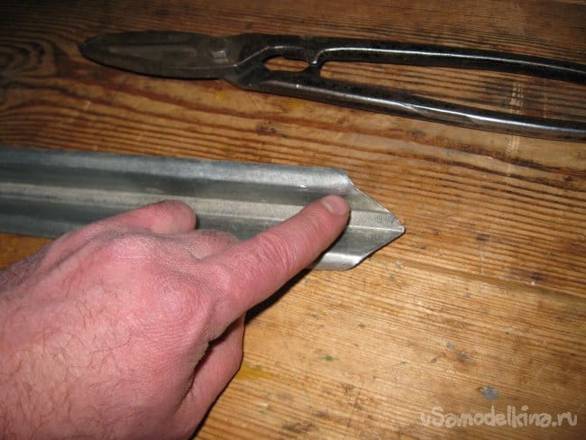 И при помощи ножниц по металлу, заостряем его с одной из сторон.