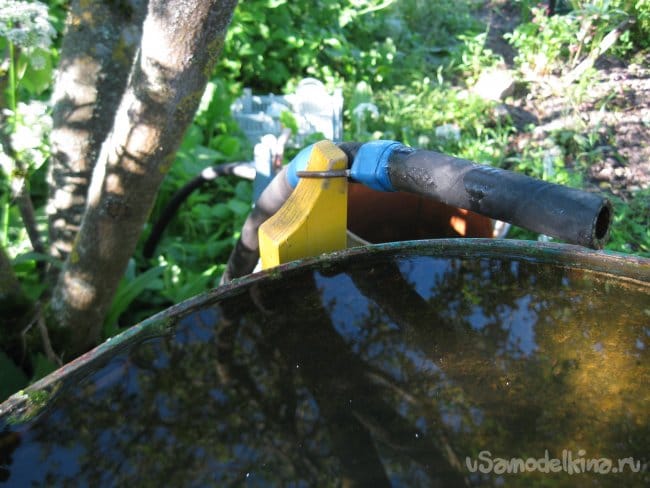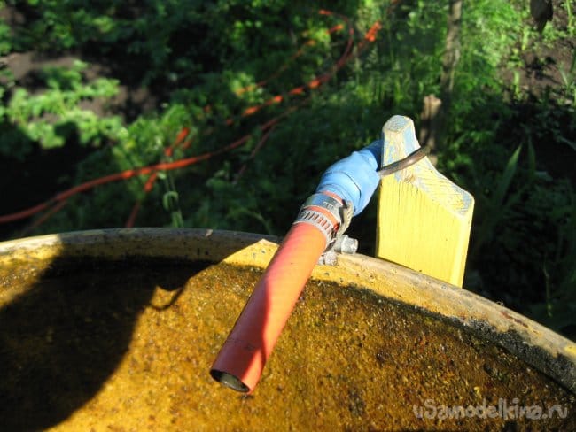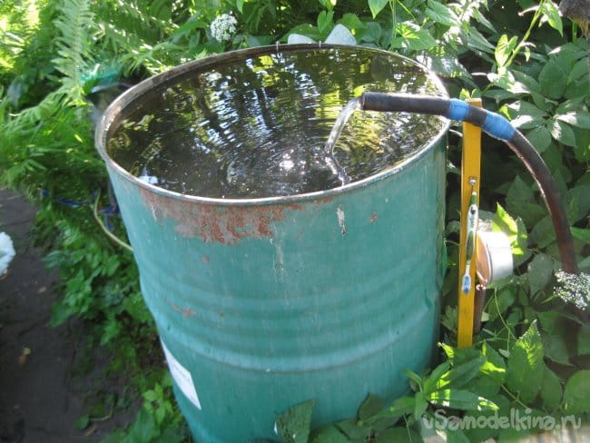 Однако все эти приемы по большей части являются очень громоздкими, неудобными и самое главное, не очень надежными. Так, например, шланг, прижатый чем-нибудь тяжелым или лежащий на дне бочки, может выскочить и упасть на землю. В результате, ценная вода будет литься впустую.