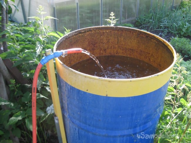 Тем не менее, в жаркую и сухую погоду, поливать растения теплой водой из бочек, приходится практически каждый день. А соответственно, каждый вечер после полива, приходится повторно наполнять эти бочки водопроводной водой из шланга, чтобы она к следующему вечеру отстоялась и нагрелась.