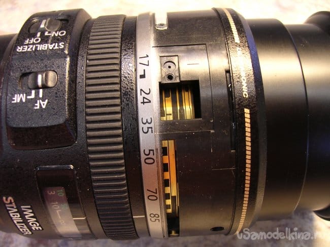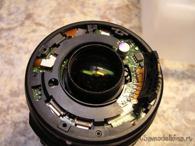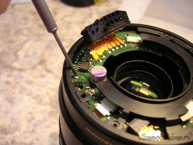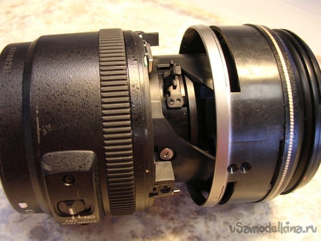 Снимаю блок кнопок управления на боковой грани объектива.