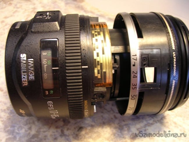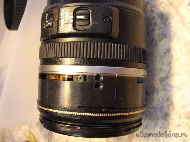 Можно демонтировать пины удерживающие внешние баррели объектива. Они к стати изготовлены из жесткого алюминия и анодированы в черный матовый цвет. Минимизирующий блики.