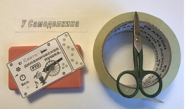 Для ускорения «отделочных работ» корпуса, этикетку «Made in Russia» можно не приклеивать (и ждать 24 часа пока клей высохнет), а «накрыть» липким скотчем. Чтобы получилось ровно, сначала этикетка прилепляется к полоске скотча, а затем скотч лепится на текстурную плёнку.