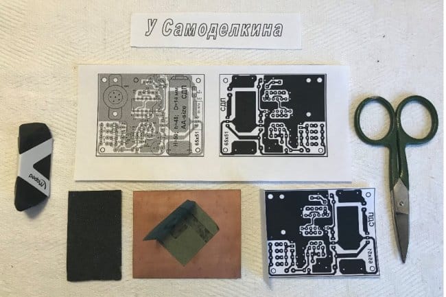 Перед нанесением рисунка трассировки на ПП, фольгированную сторону ПП тщательно очищают от грязи и зачищают мелкой шкуркой. Мелко зашкуренная поверхность медной фольги лучше удерживает на своей поверхности слой тонера. Начинающим радиолюбителям рекомендуется использовать двусторонне фольгированную плату, оставив один слой фольги под экран. (Авторский экземпляр СДП работает без экрана).