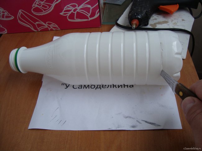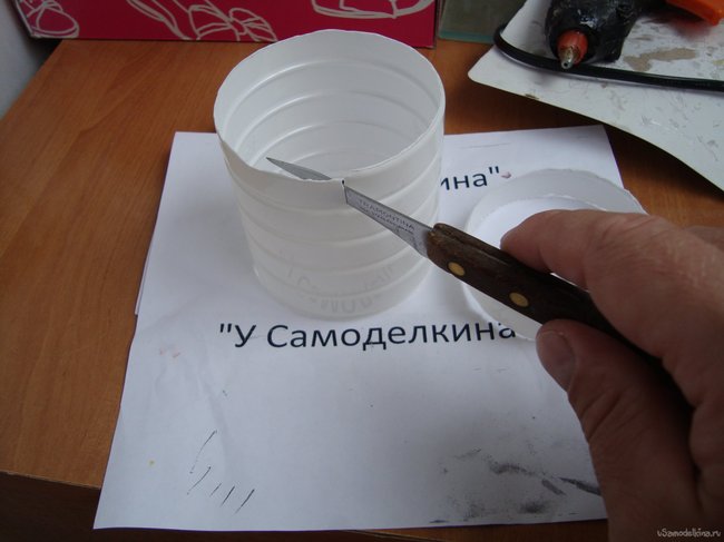 Итак, сырье для, производства мыльницы, готово, инструмент, с помощью которого мы будем это делать, готово- приступаем. Для начала, отступив от дна пластиковой бутылки два сантиметра, срезаем его при помощи острого ножа.