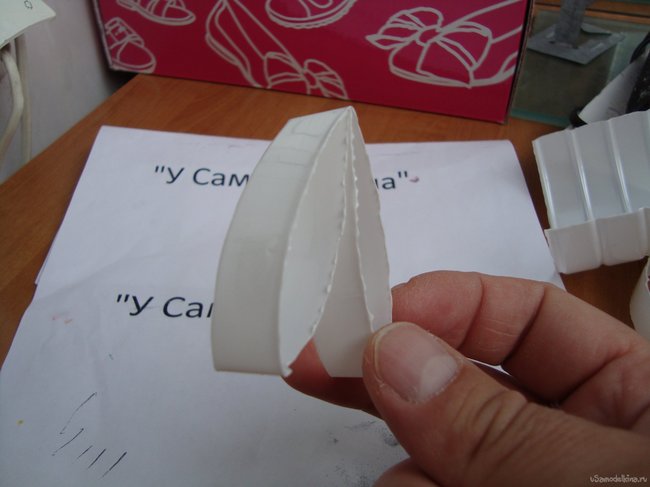 Заготовки готовы- теперь просто соединим их между собой. Для этого наносим клей на дно мыльного ложа с одной и другой стороны и приклеиваем к нему ножки.