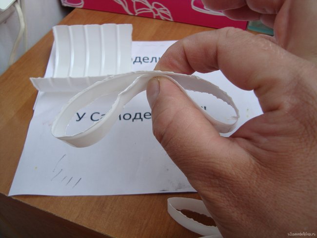 Делаем, из срезанных колец, ножки будущей мыльницы- для этого, сводим стороны кольца друг с другом и сгибаем в форму кренделя.