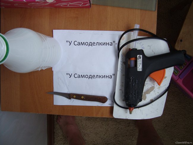 Для того чтобы изготовить мыльницу из пластиковой бутылки, нам потребуется сама бутылка ( желательно кефирная, но за неимением таковой, подойдет и обыкновенная из под воды), остро заточенный нож ( подойдет обыкновенный кухонный) и суперклей или клеящий пистолет.