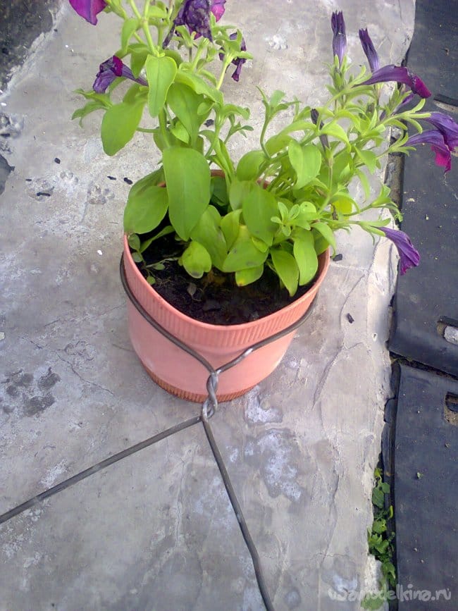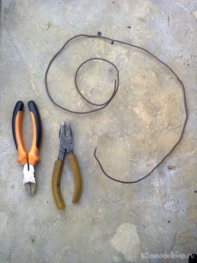 Шаг-3. Из стальной проволоки делаем кольца, в которые будут вставлены горшки с цветами.