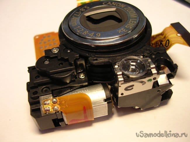 Подаю 3В на шлейф питания мотора выдвижения объектива, все складывается и раскладывается. Можно собирать фотоаппарат полностью.