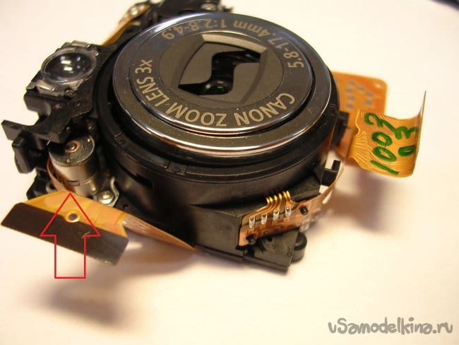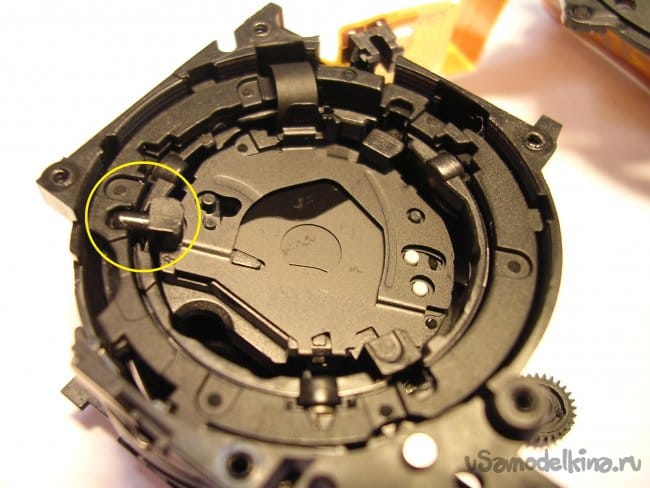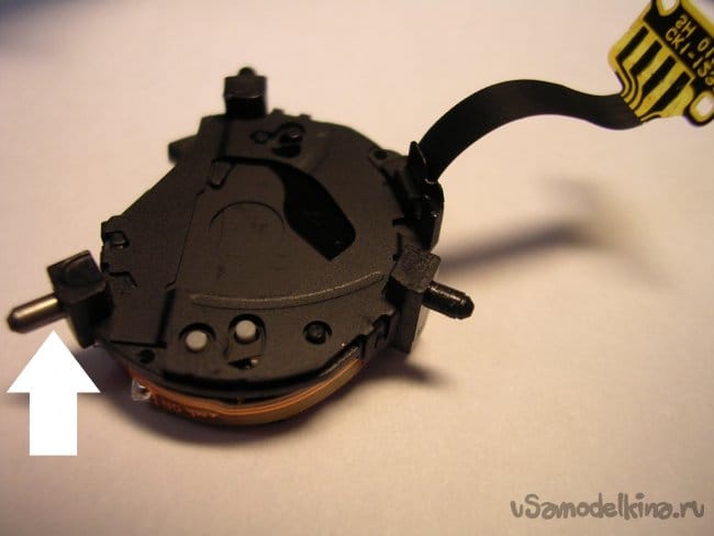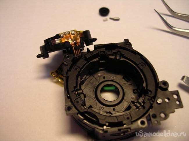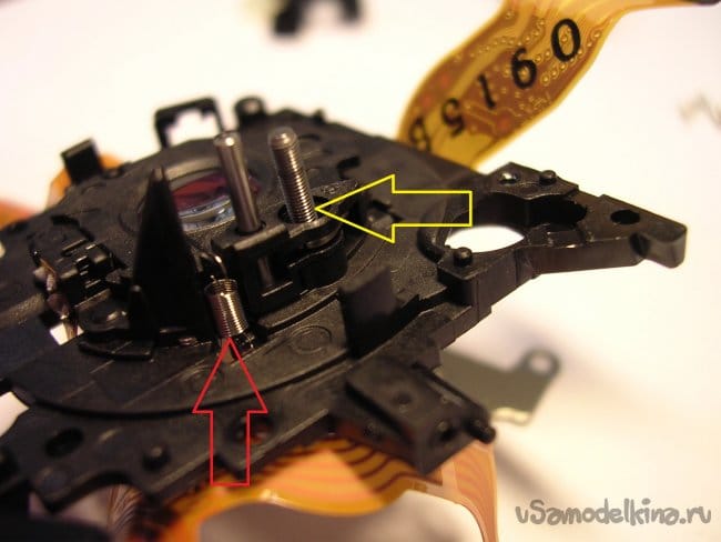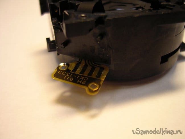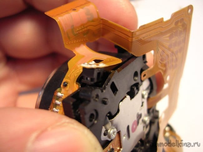 Демонтирую оптопару парковки объектива, можно снимать заднюю крышку.