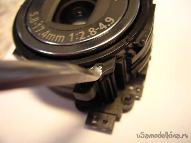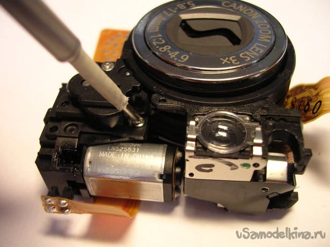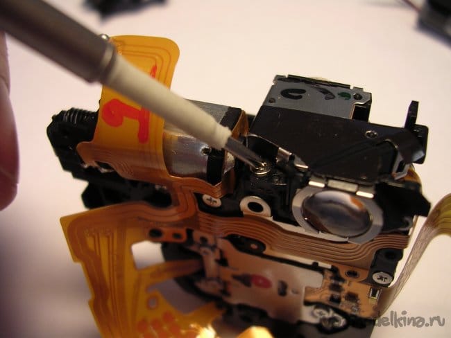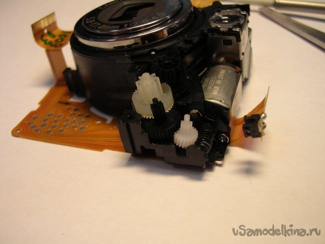 Снимаю мотор выдвижения объектива и крепления мотора автофокуса.