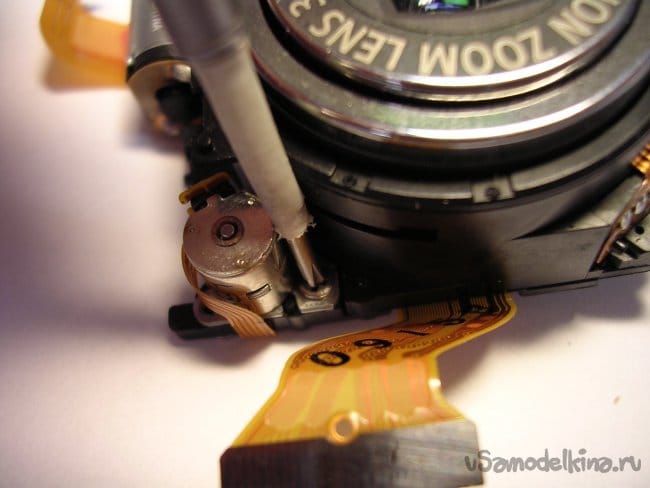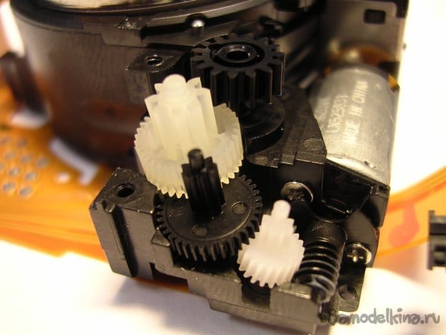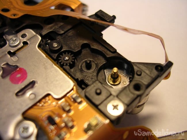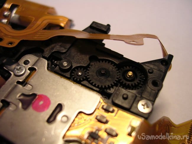 Продолжаю разборку у же объектива. Оптопара контроля работы мотора выдвижения объектива. тыкаю напряжением в 3 вольта в мотор, все стоит колом. Но мотор дернулся, значит жив и редуктор молчит. шестеренки целые.