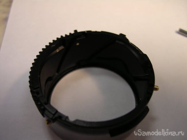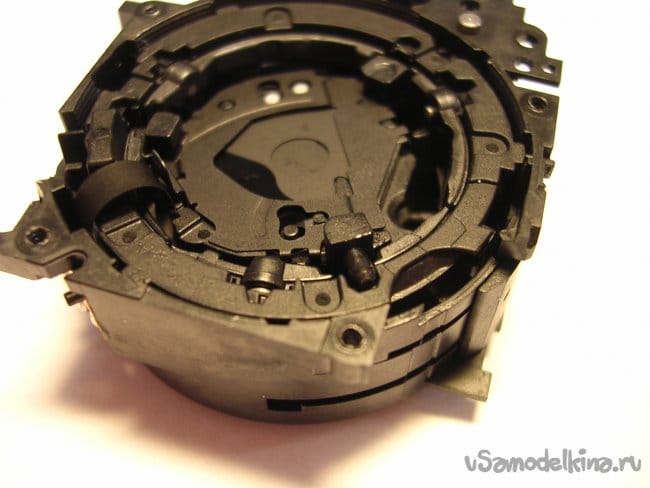 Что у нас тут, внутренняя сторона сектора управления зумом, возвратная пружина и щетки на замыкание контактных дорожек.