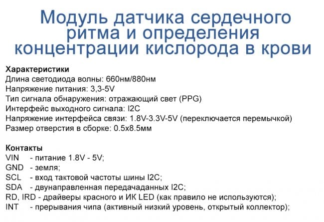 Совместимый с I2C интерфейс может передавать полученные данные на Arduino для дальнейшей обработки значений пульса и процента кислорода.