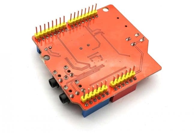 Плата выполнена в формате Arduino Uno. На обратной стороне платы расположены контактные группы для стыковки с Arduino Uno. Модуль просто устанавливается в контактные площадки шильда микроконтроллера.