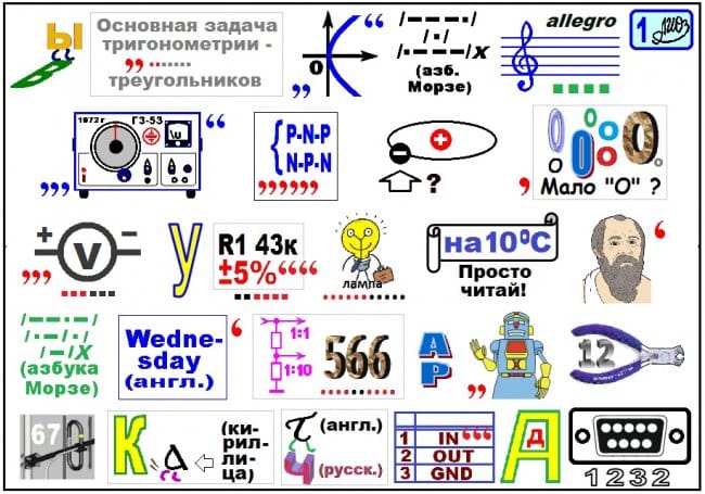 Вторая часть - ребус № 1 УИР (см. рисунок 4) - составлен по фразе из книги Дж. Карра «Диагностика и ремонт аппаратуры радиосвязи и радиовещания» [1] и содержит важное умозаключение, исходящее из практического наблюдения за работой радиоаппаратуры. То, что сообщает ребус №1 УИР, полезно знать тем радиолюбителям, которые хотят, чтобы изготовленный ими УИР проработал, не традиционные 10 ... 12 лет (рабочий ресурс многих РЭК), а намного дольше.