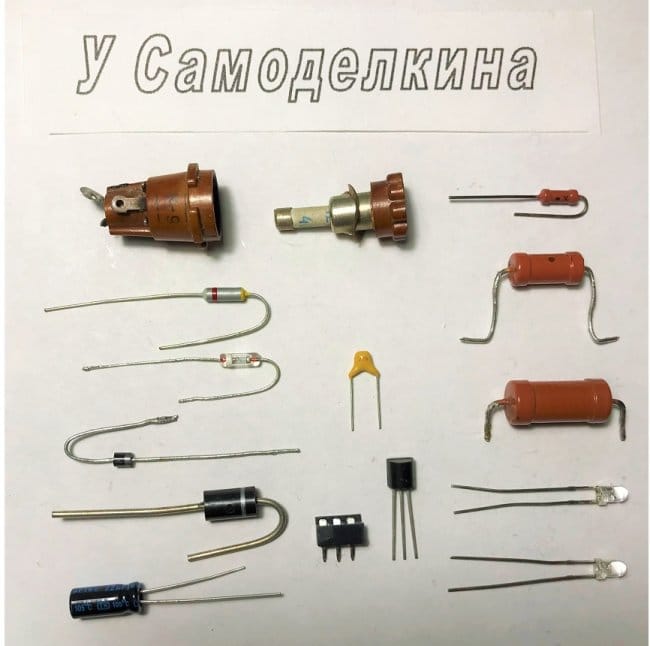 Основные разновидности деталей, составляющих схему УИР, изображены на рисунке 6. Резисторы, диоды и транзисторы показаны в единичном экземпляре во избежание «перегрузки» иллюстрации.