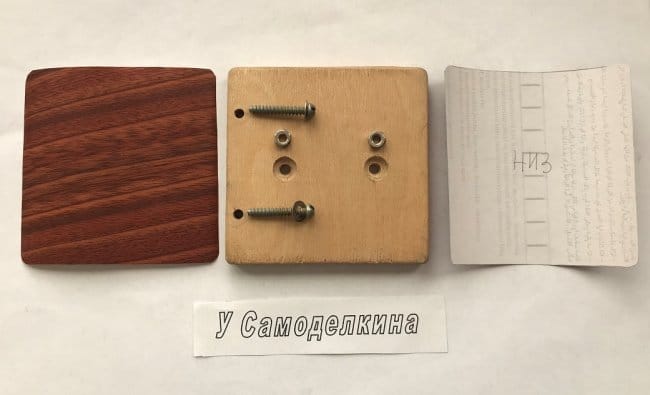 Основание для установки розетки изготовлено из 7-слойной фанеры, имеющей размеры 85х85х10 мм.