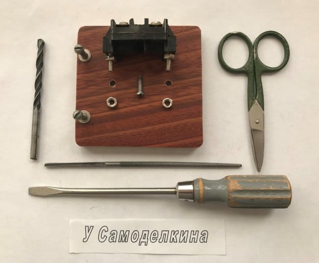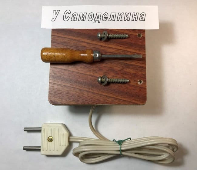 Розетка к основанию крепится двумя винтами М4х22 мм, а фанерное основание прикручивается шурупами М4х26мм к деревянной или фанерной стенке. В авторском варианте основание прикручено к деревянной дверной клетке.
