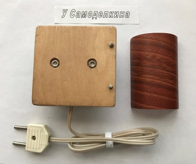 Только после окончательной сборки, фанерное основание розетки заклеено самоклеющейся плёнкой с текстурой «под дерево».