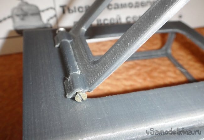 Сборка заключается в установке «ноги» на свое место и вкручивании с боков винтиков, которые удерживают «ногу» и являются соединительной осью, относительно которой «нога» может отклоняться во внешнюю сторону.