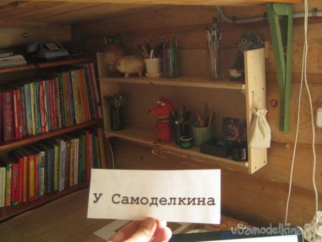 Размер и положение полки выбраны так, чтобы на и под ней – на столе, помещались высокие стаканчики с карандашами и кистями (Заглавное фото).
