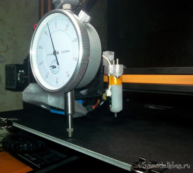 Кстати, на хитрый конический штырек, торчащий из вентилятора, крепится часовой индикатор. Это тоже хороший помощник для настройки уровня стола.