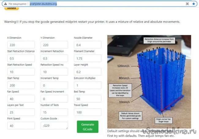 Как результат - ретракт 0,7 мм для пластика PETg и коэффициент LA (K-фактор) 0,05!