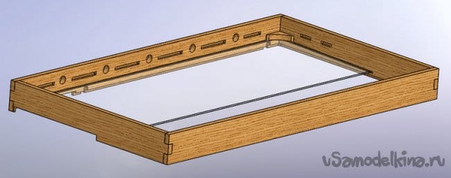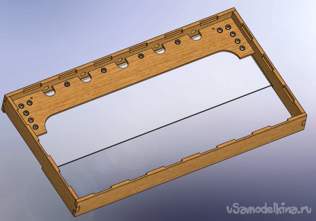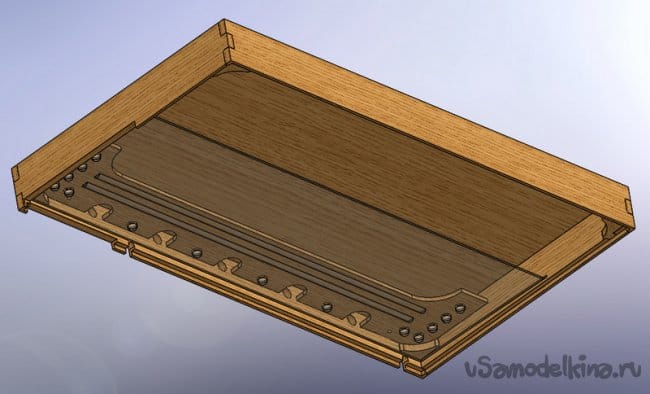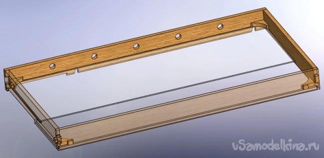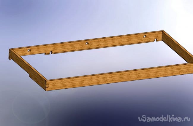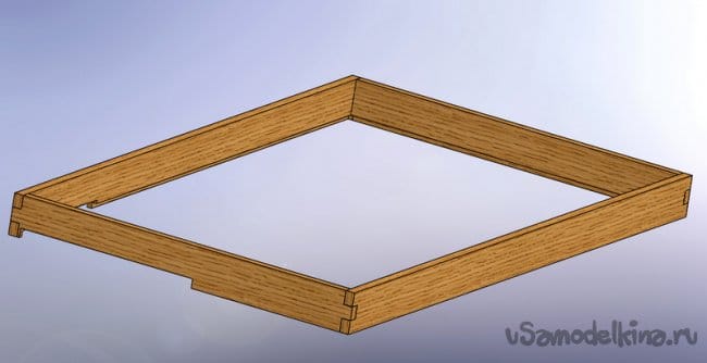 Вот что получилось сначала. Добавил вырез четверти по периметру, что бы крышка плотно садилась на аквариум (глубина посадки - 5 мм). Что бы крышка легко садилась на место, глубину четвертей заложил +1 мм на сторону.