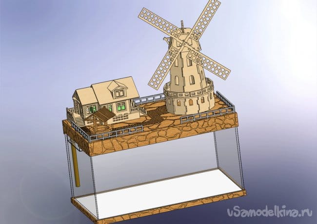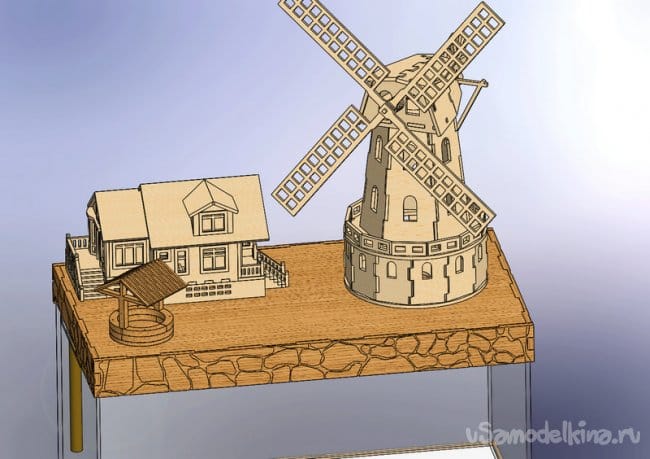 Теперь настало время задуматься о том, что будет располагаться сверху. Много вариантов перебрал, покажу конечный вариант, который выбрал. Поставлю ветряную мельницу и домик. В них будут спрятаны компрессор и электроника.