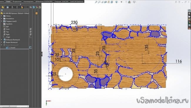 Начну с окантовки по периметру вверху. За основу возьму работу с нижней окантовкой, только изменю толщину материала, ну и соответственно скорректирую размеры и сразу заложу нужную высоту и отверстия для усиления.